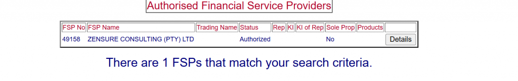 Once you have found the FSP you are searching for . You will be able to see various information such as the FSP’s Name , KI , Reps as well as the classes of business they are authorised to operate in. If the FSP , you are working with does not show up , They are NOT authorised.
