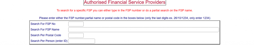 Using the link – https://www.fsca.co.za/Fais/Search_FSP.htm